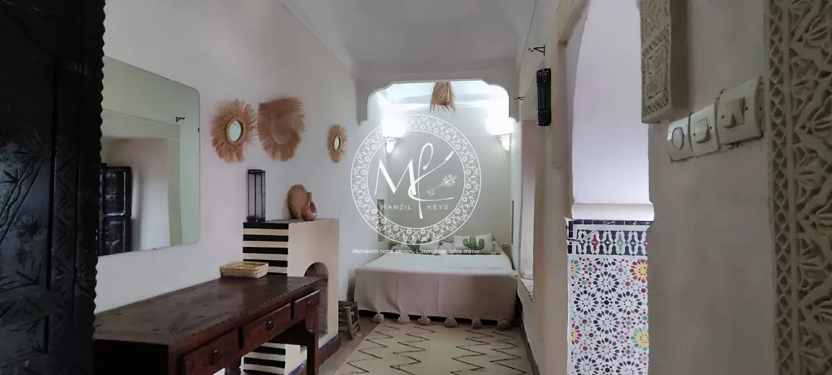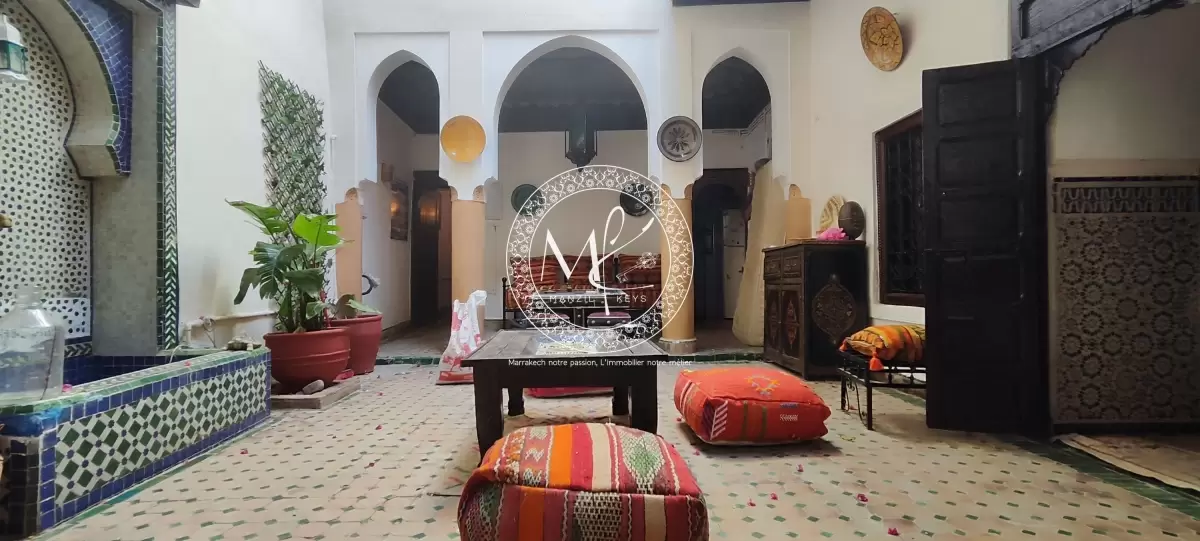 Riad authentique à deux pas de la place ! Au cœur du quartier prisé de Derb Dabachi, ce riad ancien de 95 m² au sol offre un patio lumineux avec fontaine, une cuisine, trois chambres, ainsi qu’une terrasse et une sur-terrasse avec vue magique sur la Koutoubia. Un emplacement premium à 5 minutes de la place principale. Quelques travaux de rafraîchissement permettront de révéler tout son potentiel. Un bijou de médina qui n’attend que sa touche finale ✨.