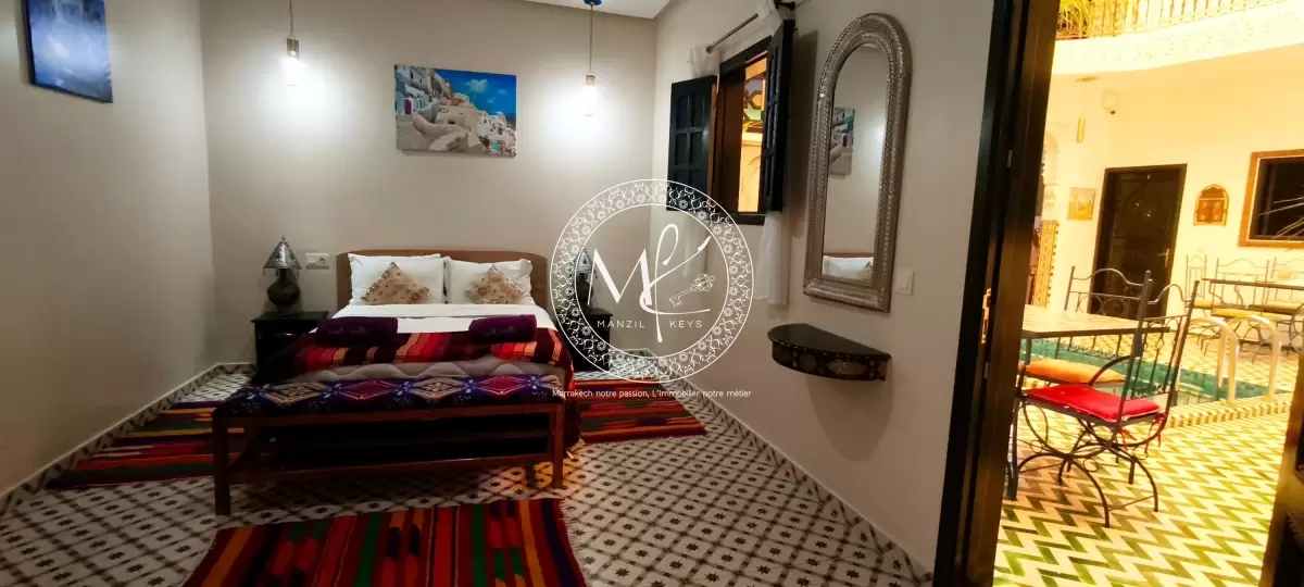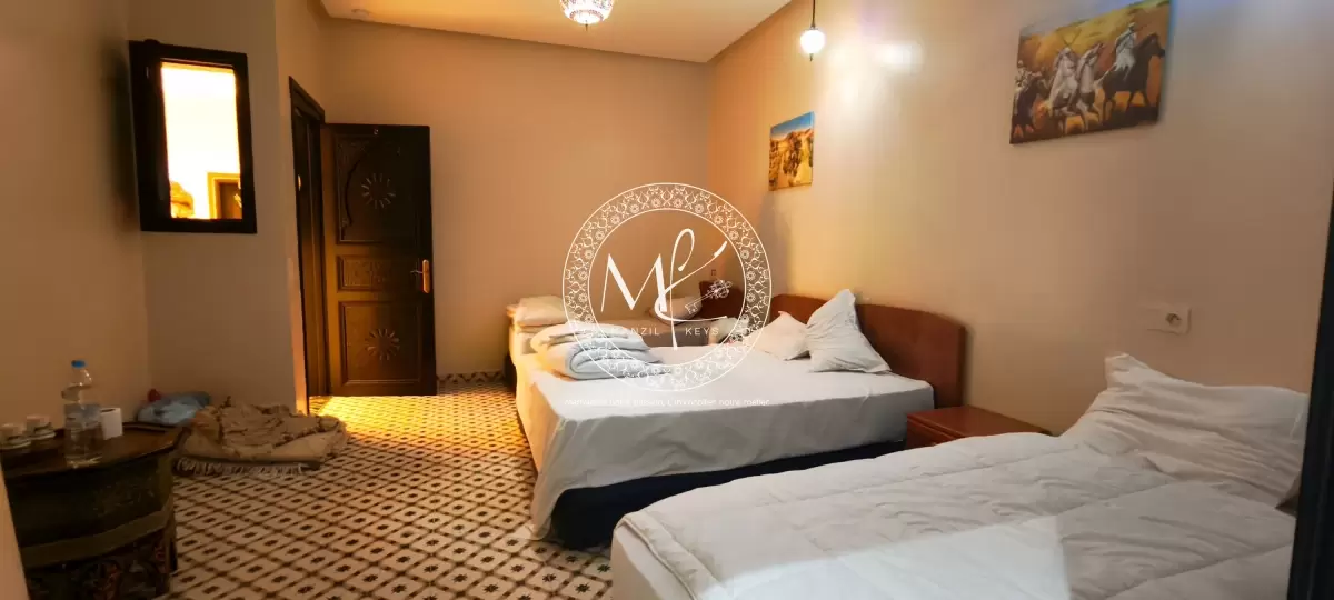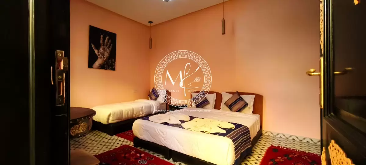 Au cœur du très recherché quartier de Dar el Bacha, ce riad classé maison d’hôtes bénéficie d’un emplacement exceptionnel, à proximité immédiate des principaux points d’intérêt de la médina. Accès simple et proche dépose voiture. Développé sur une surface de 234 m² au sol, ce bien d’exploitation offre une configuration particulièrement rare avec 10 chambres spacieuses, dont certaines peuvent être aménagées en chambres quadruples, permettant d’optimiser significativement la capacité d’accueil et la rentabilité. Dès l’entrée, une grande réception élégante donne le ton, suivie d’un patio agrémenté d’un bassin de rafraîchissement, véritable atout dans la médina. Le riad dispose également d’un sous-sol fonctionnel, dédié au personnel (vestiaires, sanitaires….) ainsi que d’une grande cuisine professionnelle entièrement équipée, parfaitement adaptée à une activité de maison d’hôtes. La terrasse, vaste et ensoleillée, constitue un espace de vie supplémentaire particulièrement valorisable, avec : - une pièce dédiée à la restauration - une cuisine d’été - un espace pouvant être transformé en hammam et salle de massage Entièrement rénové, le riad est aujourd’hui en parfait état d’exploitation. Actuellement exploité depuis un an, il présente encore un fort potentiel d’optimisation du chiffre d’affaires, notamment via une montée en gamme de l’offre et une meilleure valorisation des espaces existants.